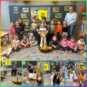 Przedszkolaki powitały gościa radosną piosenką „Babciu, babciu, kocham Cię”, a następnie uważnie słuchały bajki. Po jej zakończeniu chętnie i aktywnie odpowiadały na zadawane pytania, wykazując się dobrą znajomością treści opowiadania.